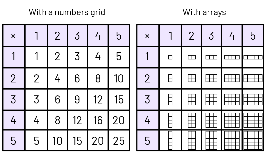 Be sure to have a standard multiplication table as well that students can reference, as shown below.