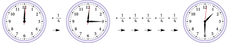 \(\frac{1}{4} + \frac{1}{4} + \frac{1}{4} + \frac{1}{4} + \frac{1}{4} + \frac{1}{4} = \frac{6}{4}\; so \;1{\frac{2}{4}\; or\; 1\frac{1}{2}}\)
