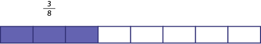 | If the denominator of a fraction is much larger than the numerator, the fraction represents a small amount, and the fraction is near 0. Thus, \(\frac{3}{{25}}\) is near 0. | If the numerator of a fraction is approximately half the denominator, the fraction is close to \(\frac{1}{2}\). Thus, \(\frac{3}{8}\) is close to \(\frac{1}{2}\). One could add that \(\frac{3}{8}\) is slightly less than \(\frac{1}{2}\), because \(\frac{3}{8}\) is less than \(\frac{4}{8}\), which is \(\frac{1}{2}\). | If the numerator of a fraction is approximately equal to the denominator, the fraction is close to 1 because it almost entirely represents the whole. Thus, \(\frac{9}{10}\) is close to 1. |