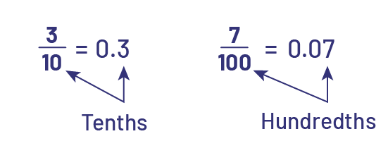 Students need to understand that since decimal notation is just another way of representing a decimal fraction, it is then possible to establish an equality relationship between the two notations (for example, \(0.3\; = \;\frac{3}{{10}}\)). By recognizing this equality, students are better able to associate a place value with each of the digits (for example, ones, tenths, hundredths) that make up a decimal number.