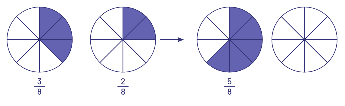 Students have already developed a solid understanding of addition and subtraction. It is important to make connections between operations on whole numbers and operations on fractions. For example, adding 3 eighths and 2 eighths is the same as adding 3 candies and 2 candies. Only the notation is different.