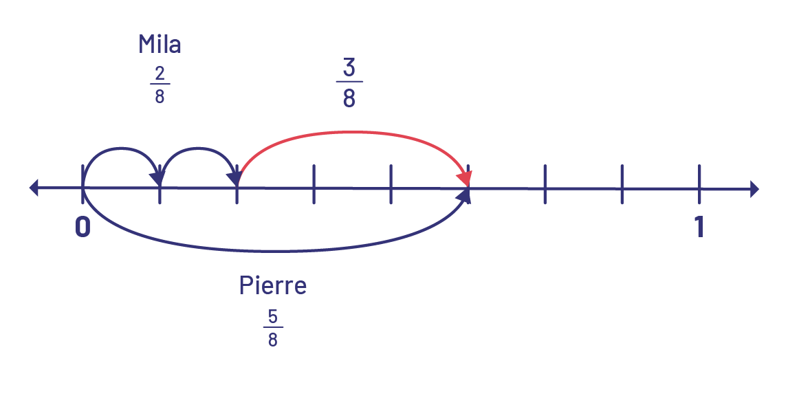 Mila used \(\frac{2}{8}\) of a pitcher to water her plant. Pierre used \(\frac{5}{8}\) of the pitcher to water his plant. What is the difference between the amounts of water used by Pierre and Mila?