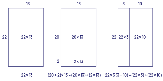 \(22 \times 13 = (20 \times 13) + (2 \times 13) \) or