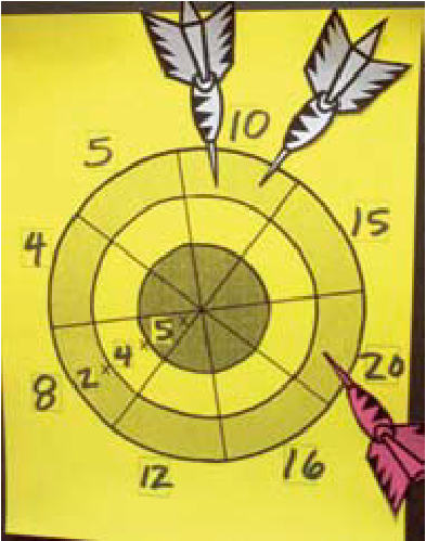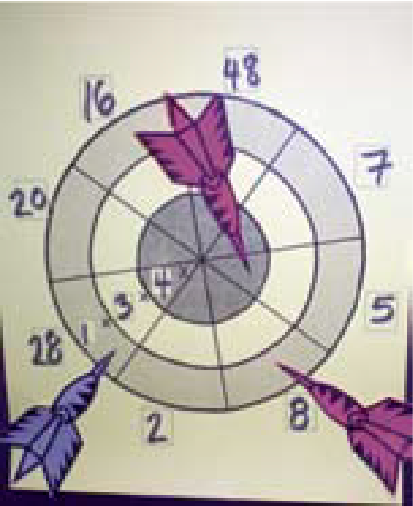 Present Appendix 6.2 on the interactive whiteboard or reproduce it on the board and describe it (see Appendix 6.1). Explain to students that this game is different from traditional darts.