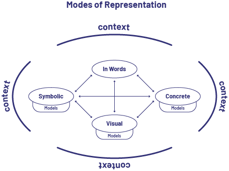 Teachers need to be aware of the order in which they should introduce these four modes of representation with students. Baroody and Coslick (1998) suggest that a new concept should be presented in a real, meaningful context so that students can first create representations using words, followed by concrete, visual (semi-concrete) representations. Only when they have developed some understanding of the concept can they move on to its symbolic representation. Students need to be able to make connections between representations and move easily from one representation to another.