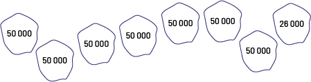 Sketch: A number can be represented by sketches that illustrate certain groupings. For example, the number 376 000 can be illustrated in groups of 50 000 as follows: