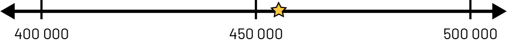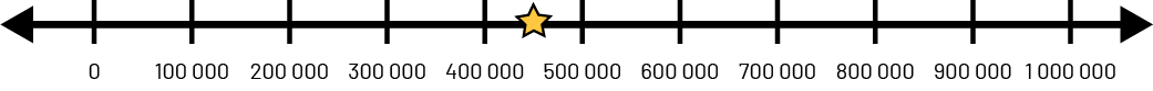 Number Lines: In the primary grades, students use and construct number lines to skip count or to identify the number of tens in a number. In the junior grades, the use and construction of a variety of number lines allows students to represent large numbers and recognize the relationships between them. Examples of number lines showing the number 455 736 include the following: