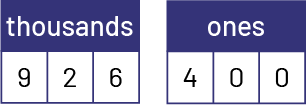 • nine hundred and twenty-six thousand is represented by a 9, 2 and 6 in the thousands period.