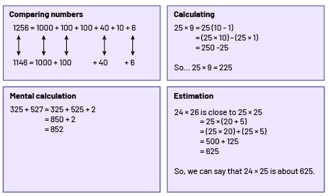 It is therefore important that students develop mental representations of different numbers in different contexts. Take, for example, the number "200 000," which can be mentally represented by 20 grids of 10 000 or by 10 times the number of seats found in a lecture hall.