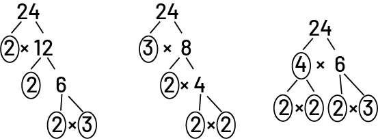 \(24\; = \;2\; \times \;2\; \times \;2\; \times \;3\)