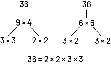B2.6 Represent composite numbers as a product of their prime factors, including through the use of factor trees.