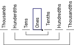 The position of the ones defines the whole according to which are formed on the one hand the tenths, the hundredths and the thousandths and on the other hand the tens, the hundreds and the thousands. It can therefore be said that the ones, identified by the decimal point, is at the heart of the decimal system.