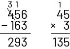 \(\begin{array}{l}135\; \times \;10\; = \;1350\\4.5\; \times \;10\; = \;45\end{array} \)