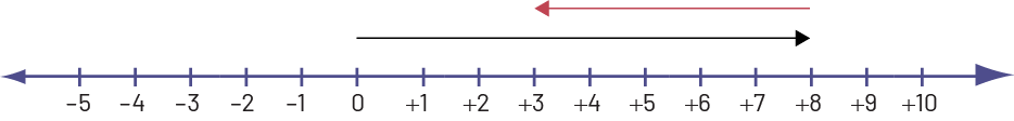 The black arrow that is positive (points to the right) represents 8.