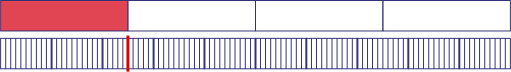 They can then partition the tenths into ten equal parts, thus creating one hundred equal parts, or hundredths of the whole, and recognize that \(\frac{{25}}{{100}}\) is an equivalent fraction to \( \frac{1}{4}\).