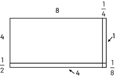 \(\begin{array}{l}\quad 4\frac{1}{2}\; \times \;8\frac{1}{4}\\ = \;(4\; \times \;8 )\; + \;(4\; \times \;\frac{1}{4})\; + \;(\frac{1}{2}\; \times \;8)\; + \; (\frac{1}{2}\; \times \;\frac{1}{4})\\ = \;32 + 1 + 4 + \frac{1}{8}\\ = \;37 \frac{1}{8}\end{array}\)