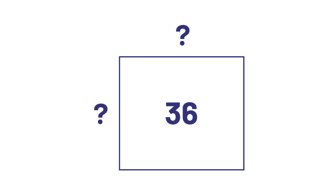 I know that the area is 36 and that \(6\; \times \;6\; = \;36\), so the dimensions of the square are \(6\; \times \;6\;\), or \({6^2}\). Then, \(\sqrt {36} \; = \;6\).