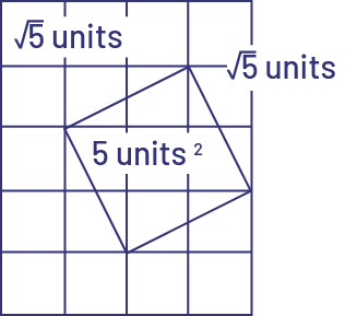 Note: Determining the length of a side of a square where the area is given is calculated by finding the square root of the area. The name of the sign used for writing square roots is radical. The radicand is the number below the radical.