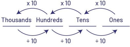 Mentally multiplying and dividing whole numbers and decimals by powers of ten builds on the constant 10:1 ratio between place value columns.