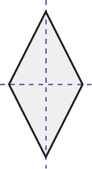 A diamond whose sides are all equal. There is a dotted vertical line and a dotted horizontal line which intersect in the centre of the shape.