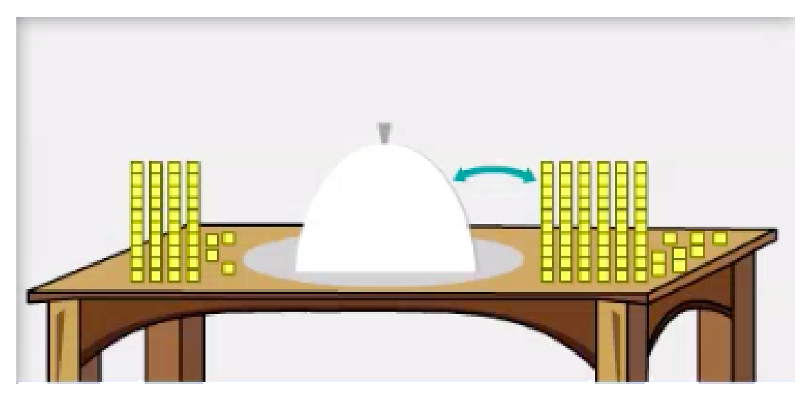 Dans l’image ci-dessous, il y a le même nombre de carrés de chaque côté de la flèche. Combien de carrés y a-t-il sous la cloche?
