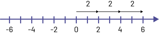 Image Une droite numérique est graduée de moins six à six. Au-dessus de la droite, une flèche relie zéro à deux en indiquant deux. Une flèche relie deux à quatre en indiquant deux. Et une flèche relie quatre à six en indiquant deux.