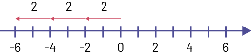 Image Une droite numérique est graduée de moins six à six. Au-dessus de la droite, une flèche relie zéro à moins deux en indiquant deux. Une flèche relie moins deux à moins quatre en indiquant deux. Et une flèche relie moins quatre à moins six en indiquant deux.