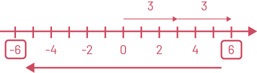 Une droite numérique est graduée de moins six à six. Au-dessus de la droite, une flèche relie zéro à trois en indiquant trois. Et une flèche relie trois à six en indiquant trois.