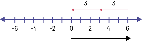 Image Une double droite numérique est graduée de moins six à six. Au-dessus de la droite, une flèche relie trois à zéro en indiquant trois. Et une flèche relie six à trois en indiquant trois. Sous la droite, une flèche part de zéro et se rend à six.