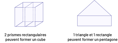 Image Deux figures. La première image est : « un prisme rectangulaire. » Sous l’image est écrite: « 2 prismes