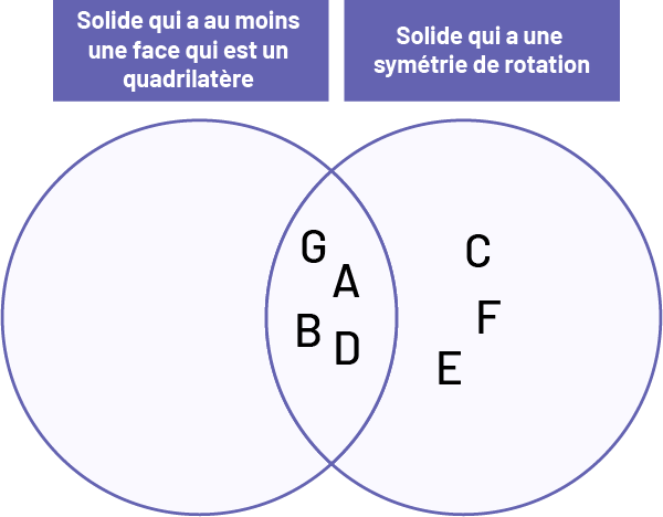 face est un quadrilatère ». Titre du second cercle : « solide qui a une symétrie de rotation ». Dans ce cercle